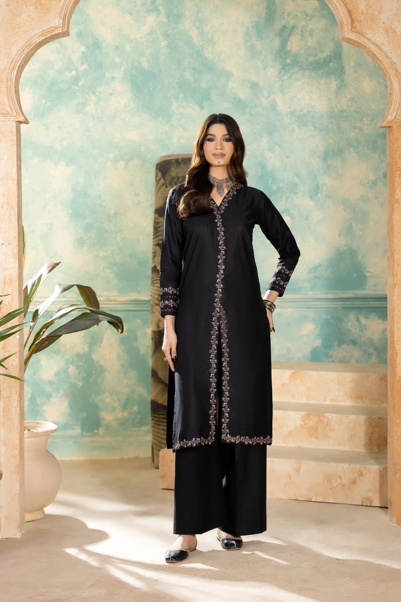Dry clean recommended. Iron clothes at moderate temperature. Store outfit in the garment bag provided.